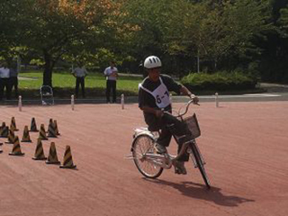地区予選で選抜された県内10校50人の児童が参加し、自転車の走行技術や交通ルールの知識を競いました。