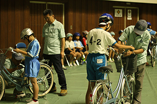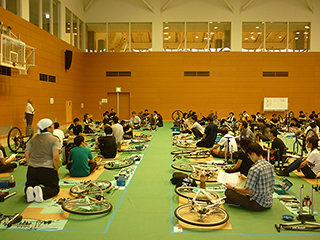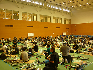 千葉県自転車組合 千葉支部の組合員様が、大会の準備のため自転車の整備をする。
